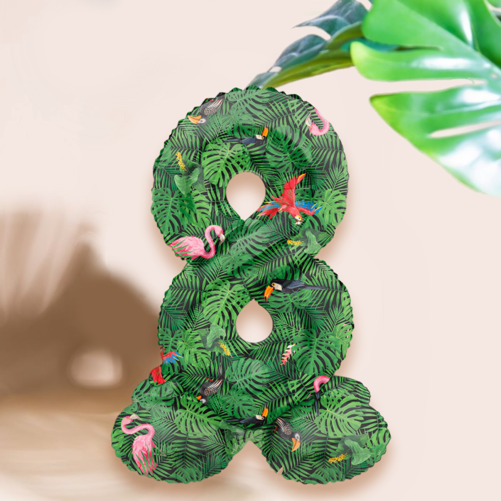 In de verpakking zit één folieballon van circa 72 centimeter hoog. De ballon is bedekt met groene bladeren en tropische dieren zoals papegaaien en flamingo’s. Aan de onderkant van de ballon zitten voetjes, zodat de ballon rechtop blijft staan zonder dat er gebruik gemaakt moet worden van helium!