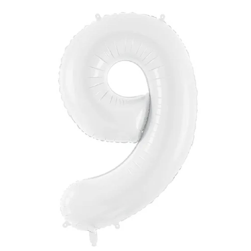 Folieballon Cijfer 9 (86 cm) – Wit