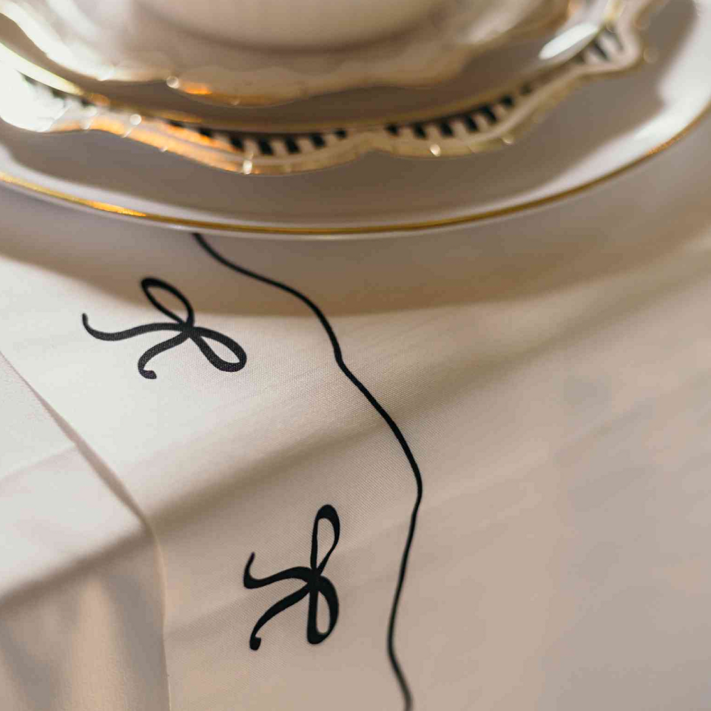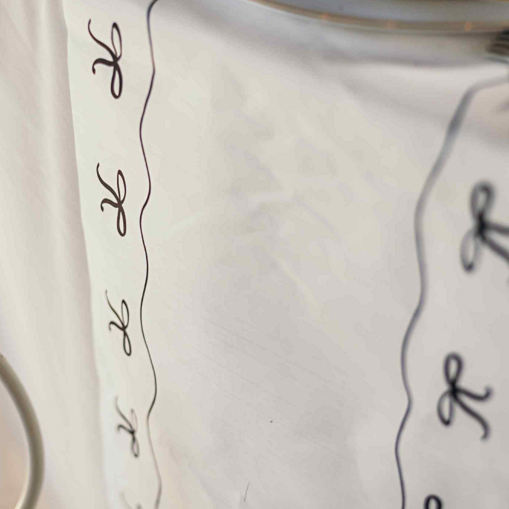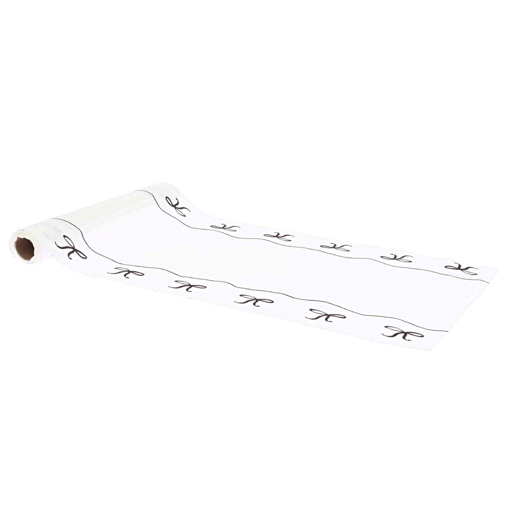 Kies voor een minimalistische tafelsetting met versiering uit onze Zwart-Wit collectie! Geef de feesttafel een elegante finishing touch met deze zwart-witte tafelloper. Het subtiele strikmotief voegt een charmant accent toe, terwijl de grafische zwart-witte kleuren zorgen voor een moderne uitstraling.